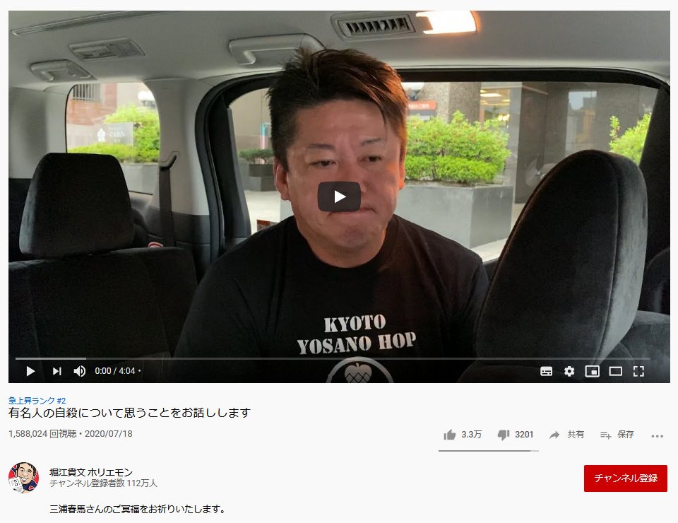 堀江貴文さん「有名人の自殺について思うことをお話しします」動画が150万回視聴を超える反響 - ニコニコニュース